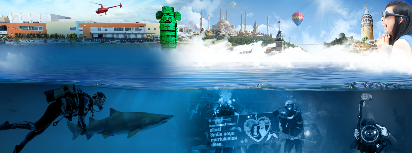 In Aquarium, where it is possible to dive with sharks and stingrays in the main tank with a water capacity of 4,000 cubic meters and in which 5 thousand creatures live,Aquarium diving certificate is given to those who dive after 30 minutes of diving activity.